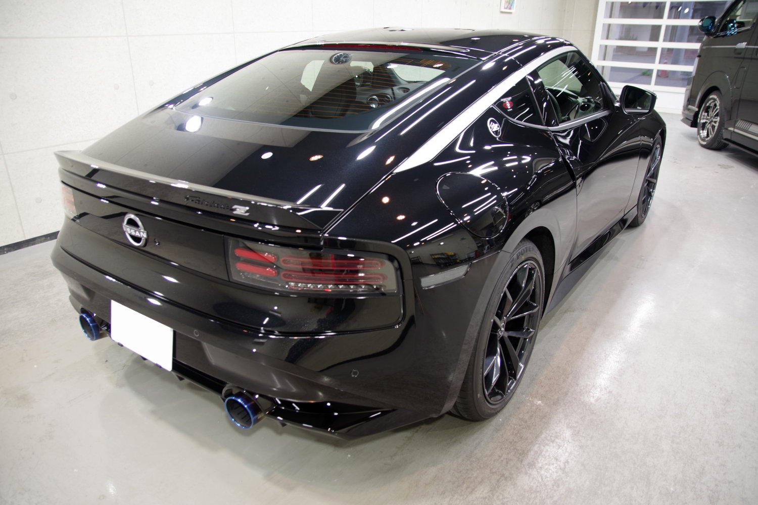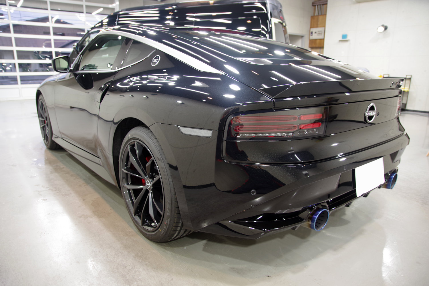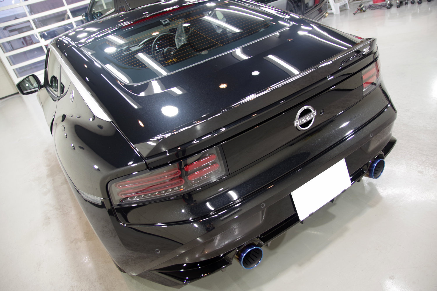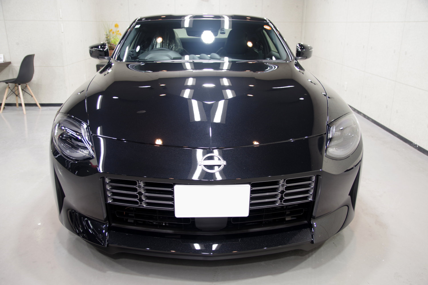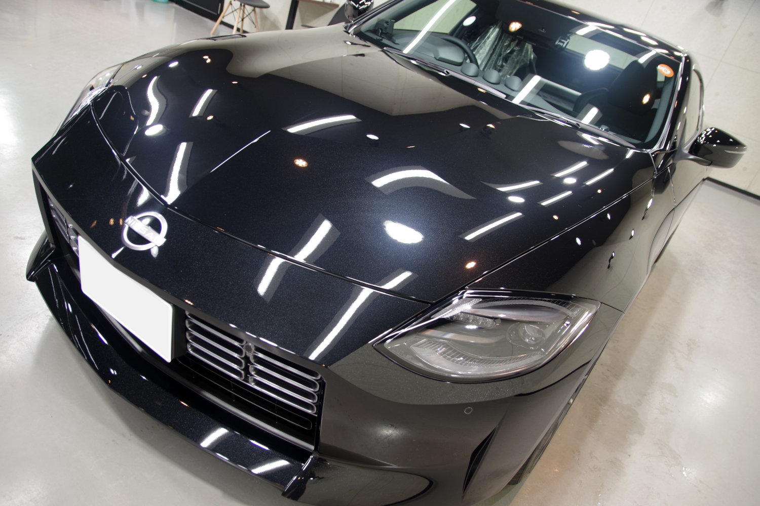 完全硬化型の3層セラミックコーティングが定着すると、これぞブラックというような黒光りのフェアレディZに仕上がりました。