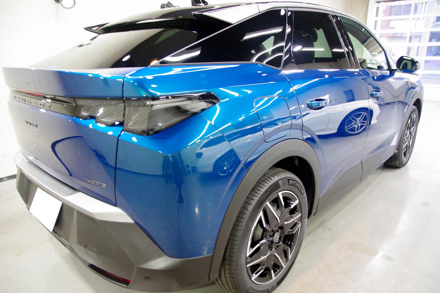 コーティング剤が完全に硬化すると、プジョーならではの鮮やかなブルーがさらに深みを増したツヤ感に仕上がりました。