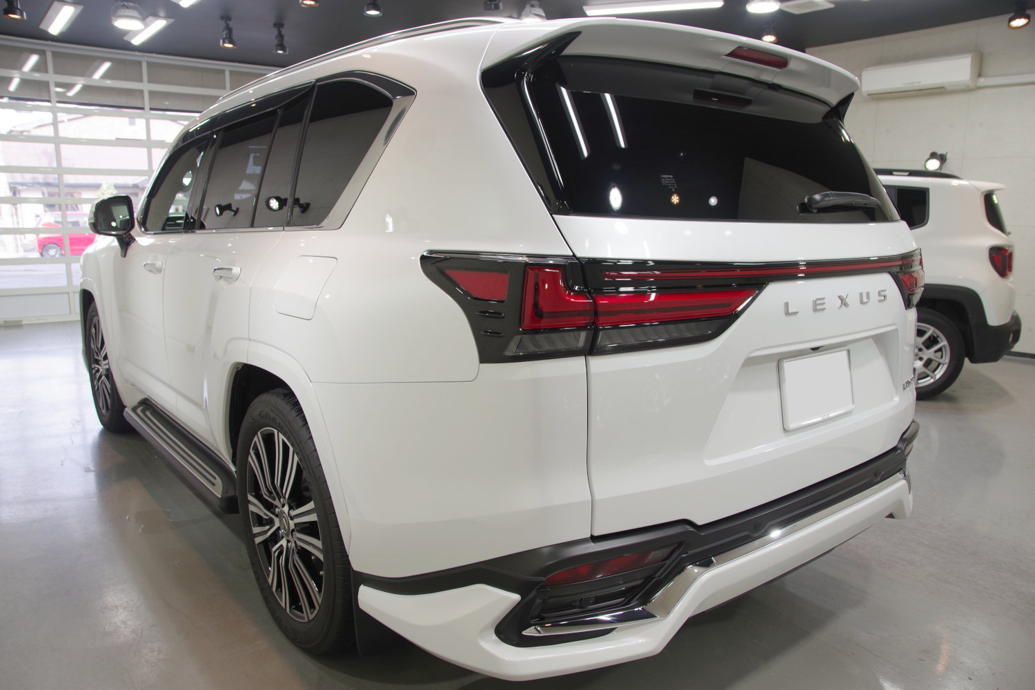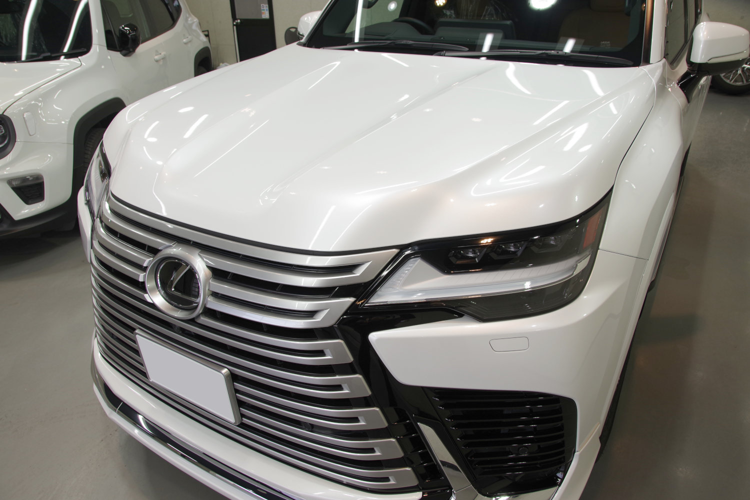 レクサス車は運転席ドアと助手席ドアは撥水ガラスですので、それ以外のガラス全面にフッ素コーティングを施工し、内装についてはレザー部分全てにレザー専用のコーティングをさせて頂きました。